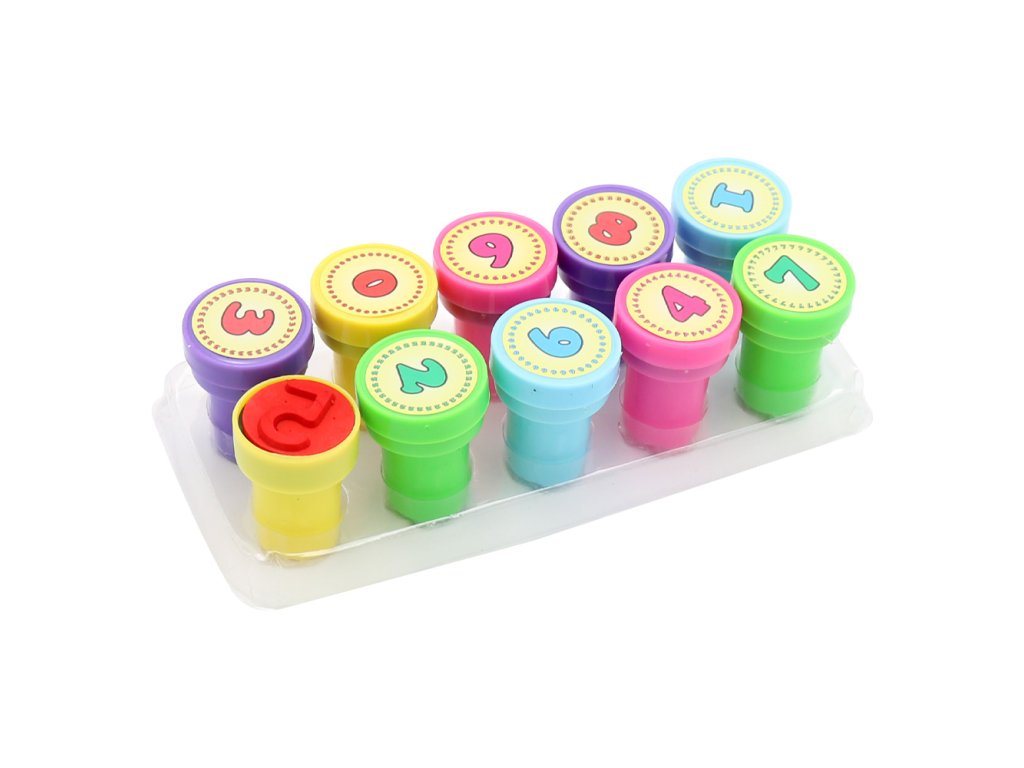 Dětská razítka kulatá, plastová (sada 10 kusů) číslice