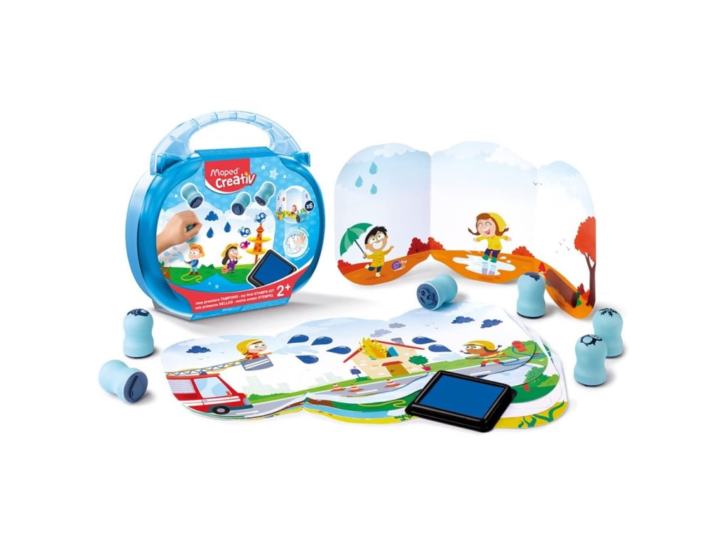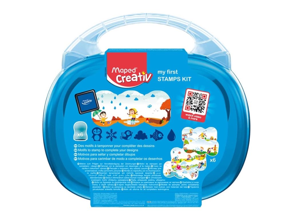 Souprava obsahuje razítka s dětskými motivy, které jsou speciálně navrženy pro malou ručku a díky měkkému povrchu se příjemně drží. V praktickém kufříku je 6 předloh, 6 razítek a polštářek s inkoustem, který lze snadno setřít z dětských prstů. Maped Creativ je kolekce kreativních sad francouzské značky Maped, tradičního výrobce kvalitních školních a kancelářských potřeb. Vhodné pro děti od 2 – 6 let.Doplňkové parametry