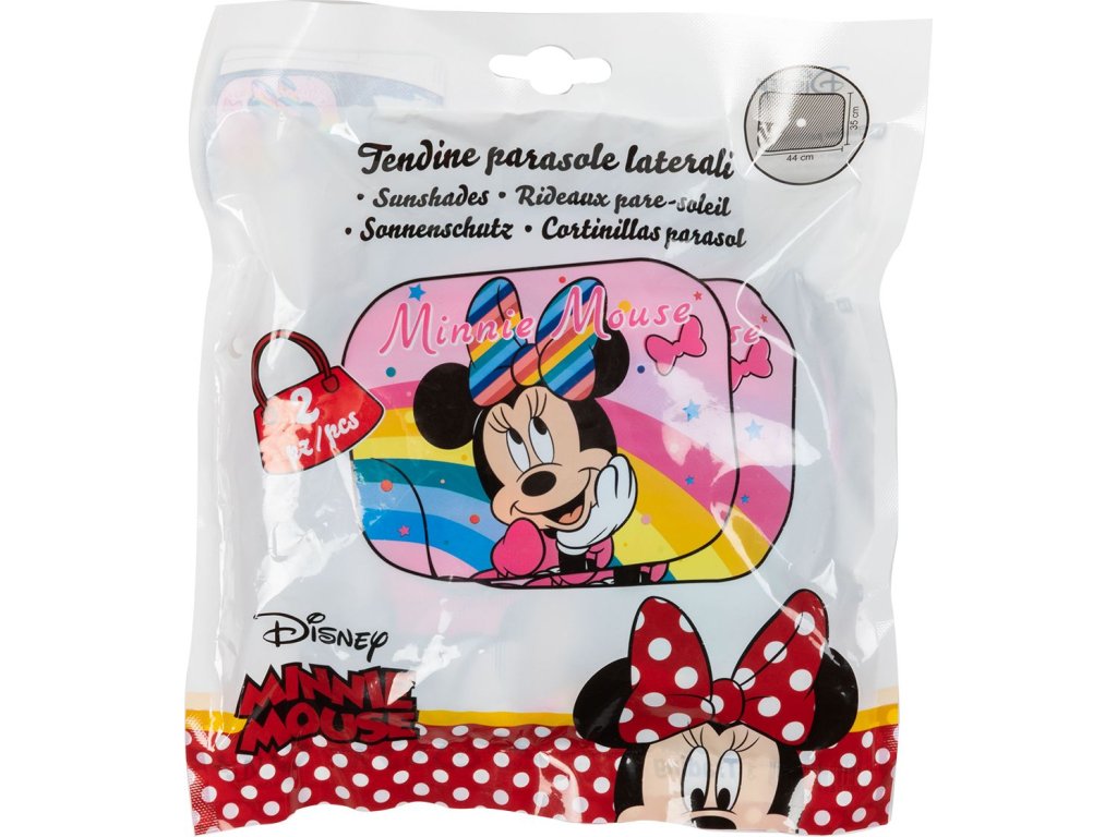 Sluneční clony Disney MINNIE, které brání pronikání slunečních paprsků do vozidla. Jsou určeny na zadní, nebo boční skla automobilu. Upevnění pomocí přísavek. komplet 2 kusy rozměr 44 x 35 cmDoplňkové parametry