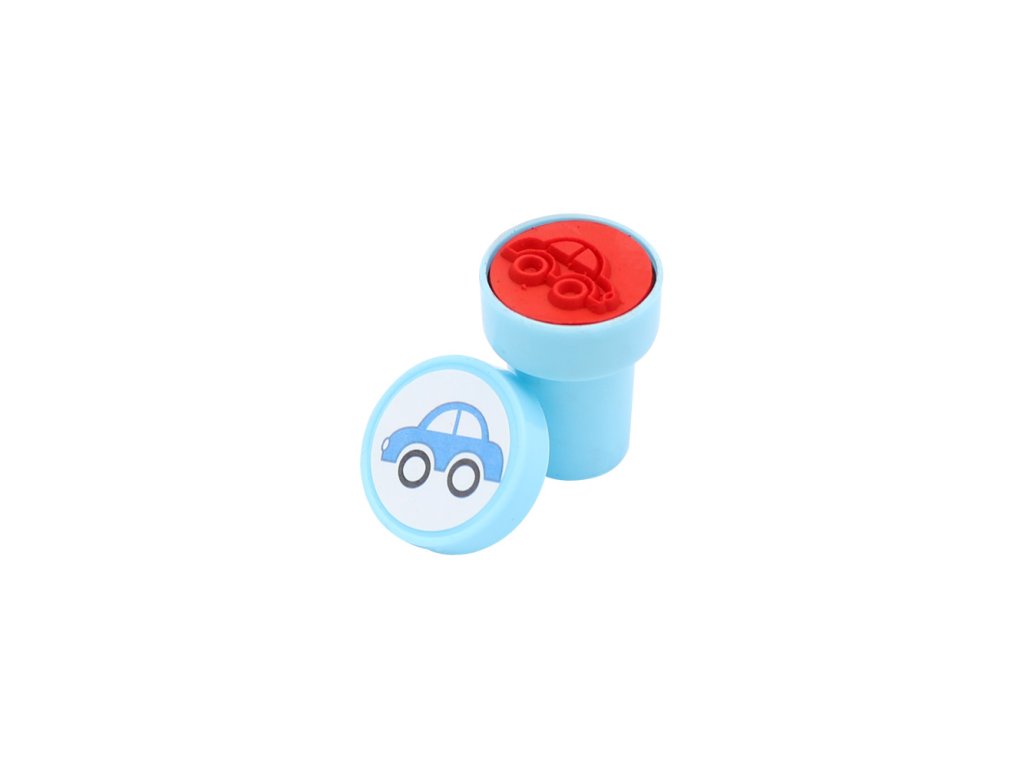 Razítko v plastovém pouzdře s víčkem k okamžitému použití, určené pro děti od 3 let.