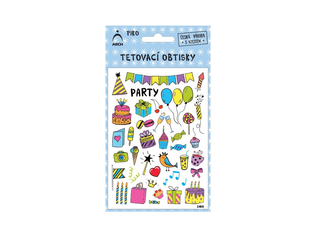 Dětské piko tetovací obtisky s motivem: párty.Doplňkové parametry