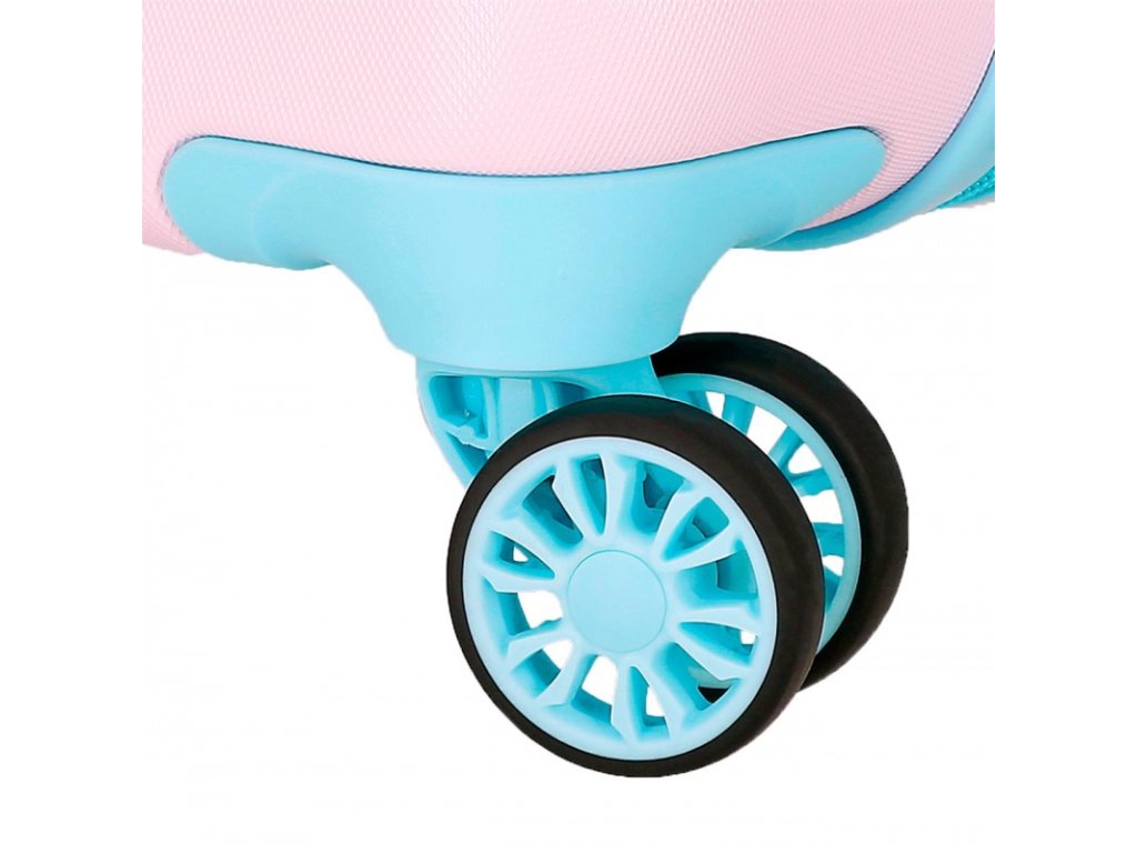 Tento růžový kufr z kolekce Heart potěší všechny děti, které milují hravý a jemný design. Je vyroben z odolného ABS plastu, který chrání obsah a zároveň udržuje nízkou hmotnost, takže se s ním pohodlně manipuluje i menším dětem. Vpředu jej zdobí roztomilý motiv Stitche v něžném srdíčkovém designu. 💗
