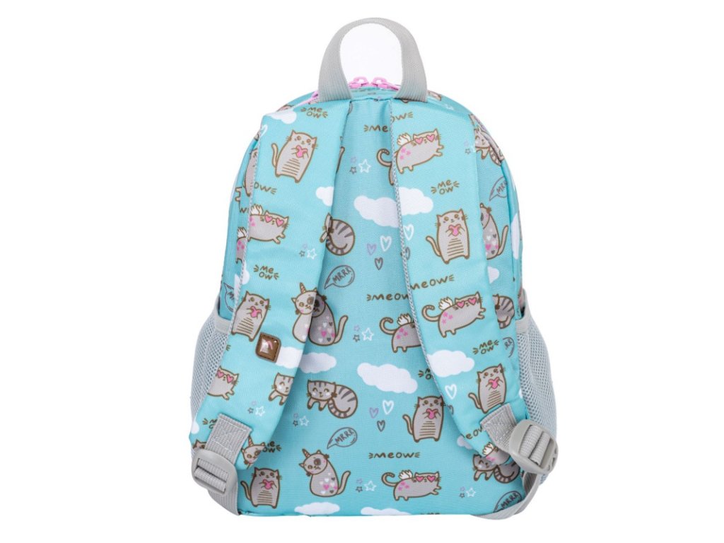 S nastavitelnými vyztuženými popruhy se batoh dokonale přizpůsobí postavě vašeho dítěte a poskytne mu maximální pohodlí při nošení. Velká přední kapsa na zip je ideální pro uložení drobností, které potřebuje mít vaše dítě vždy po ruce. Dvě postranní kapsy jsou perfektní na láhev s vodou nebo svačinu.