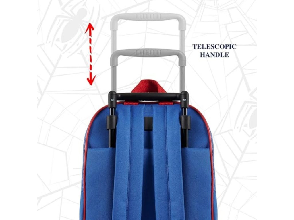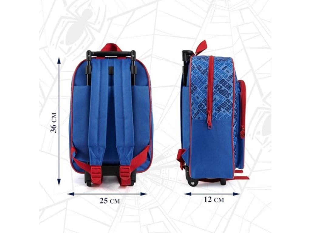 Praktický dětský batoh na kolečkách s oblíbeným motivem Spidermana. Hlavní komora pojme školní potřeby i hračky, přední kapsa slouží pro drobné předměty. Kolečka a vysouvatelná rukojeť umožňují pohodlné tahání, přičemž nastavitelné popruhy poskytují alternativu nošení na zádech. Pevný polyester zaručuje dlouhou životnost a snadnou údržbu.