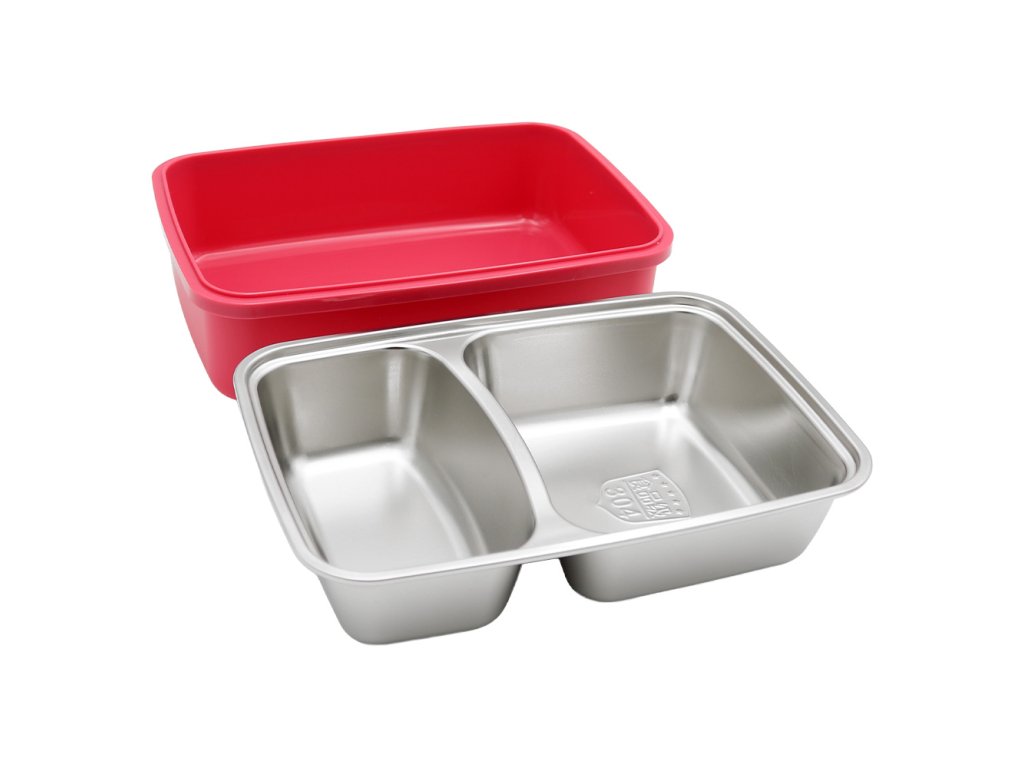 Plastový obědář pro děti s vyjímatelnou kovovou vaničkou s přepážkou, vyrobený z kvalitních materiálů.