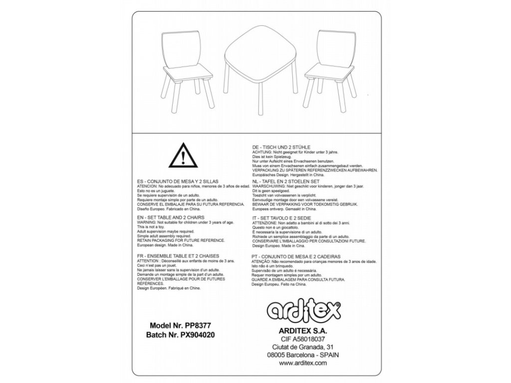 Dětský dřevěný stolek se 2 židlemi Arditex Kids. Rozměry stolku 50 x 50 x 44 cm, židlí 26,5 x 26,5 x 50 cm. Vyrobeno ze dřeva a MDF, vhodné pro děti od 3 let.