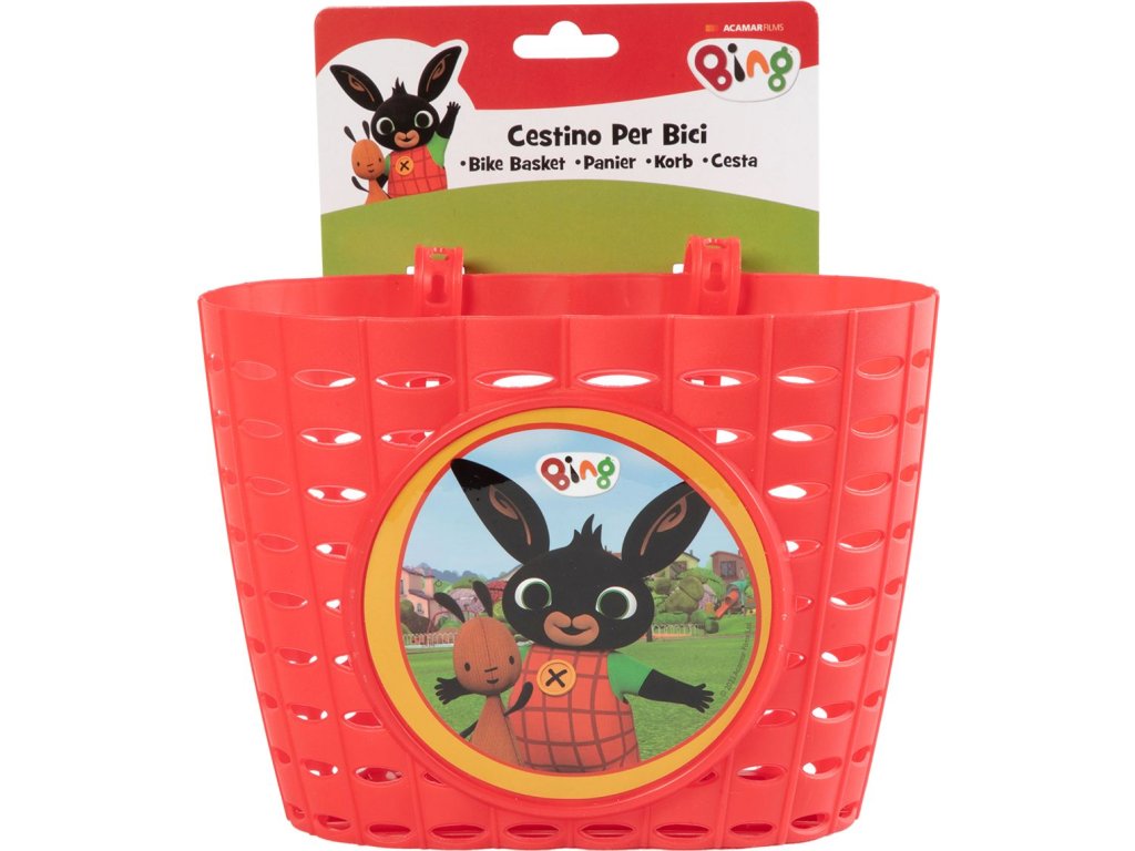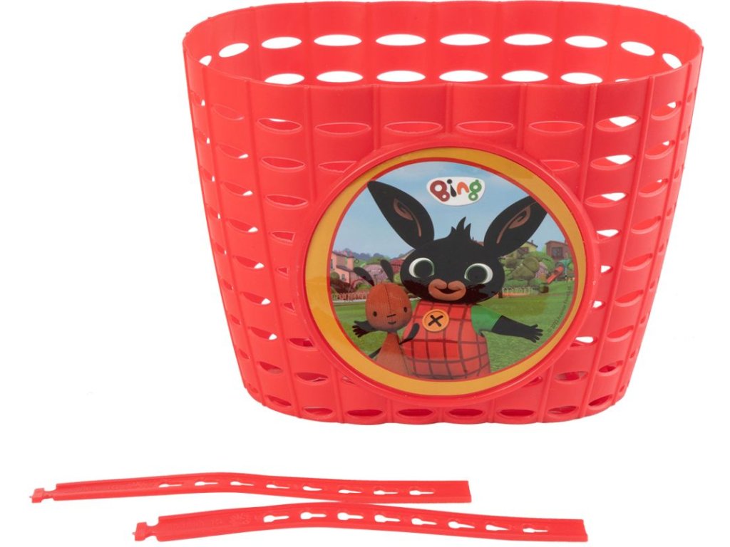 Plastový košík na kolo nebo odrážedlo s motivem BING. Košíček má plastové pásky pro uchycení na řídítka, toto uchycení je variabilní a lze košík připevnitna jakýkoliv typ kola a odrážedla.Doplňkové parametry