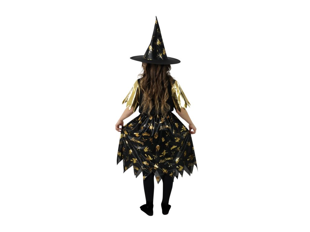 Dětský kostým čarodějnice černo-zlatá S
