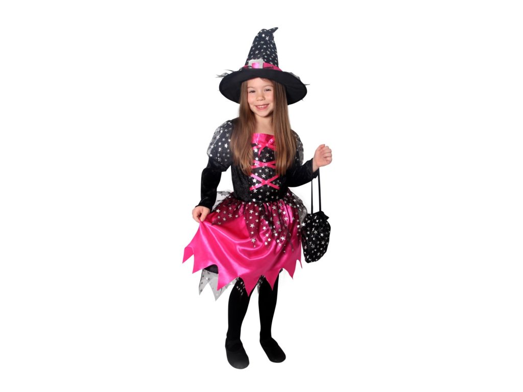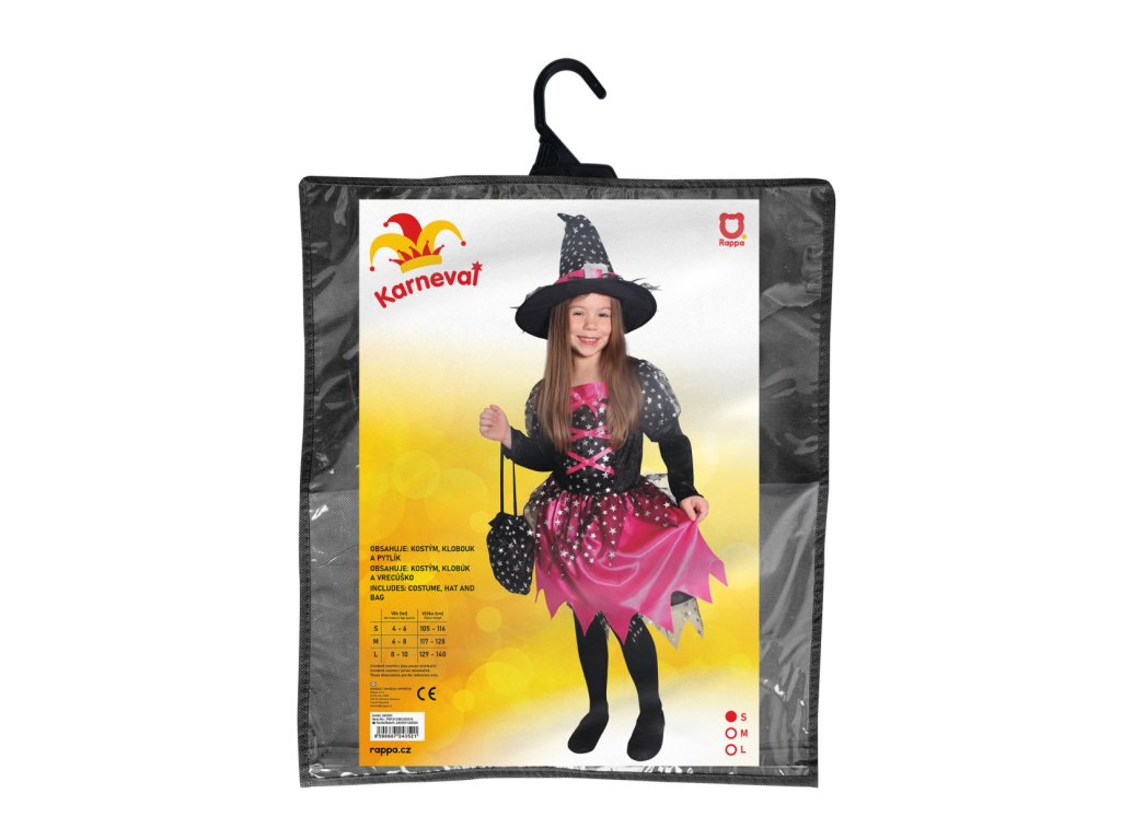 Dětský kostým čarodějnice růžová s hvězdičkami S