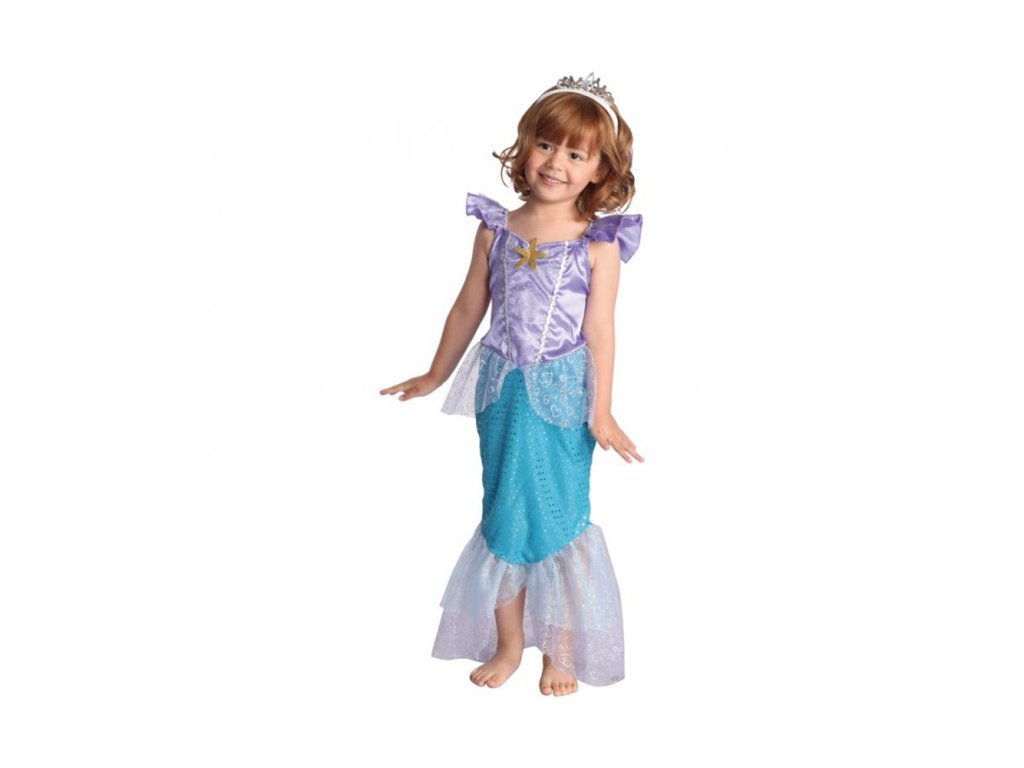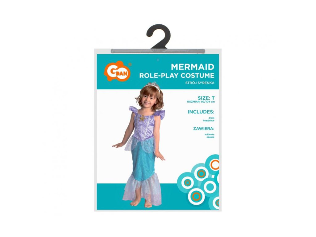 Dětská souprava převleku pro dívku - Mořská panna Balení obsahuje: šaty a čelenka Velikost: 92 / 104 cm Celková délka šatů: cca 82 cm Šířka pod pažemi: cca 29 cm Šířka v pase: cca 27-33 cm (gumička) Délka rukávu: cca 7 cm Materiál: 100% polyesterDoplňkové parametry