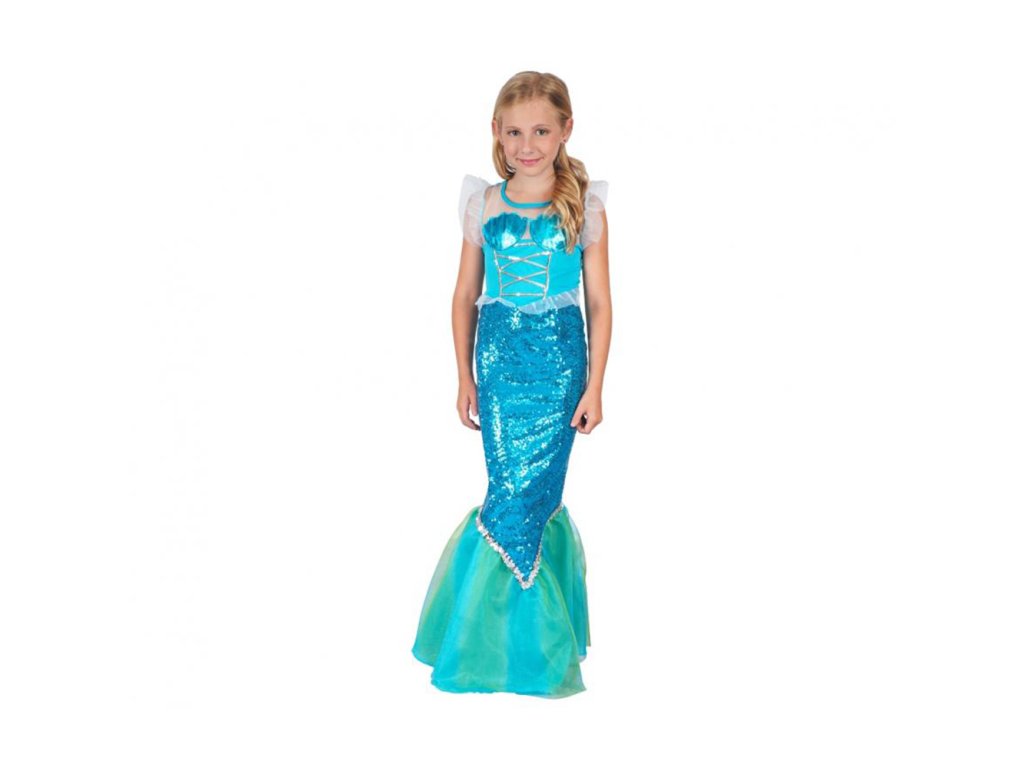 Dětská souprava převleku pro dívku - Mořská panna Balení obsahuje: šaty Velikost: 110 / 120 cm Celková délka: 110 cm Šířka v pase: 30 cm Šířka pod pažemi: 28 cm Délka rukávu: 5 cm Materiál: 100% polyesterDoplňkové parametry