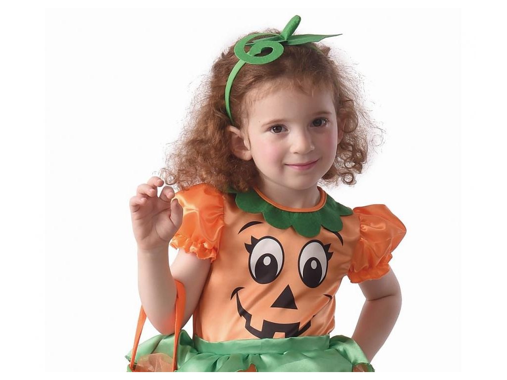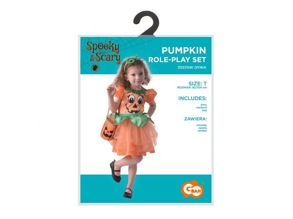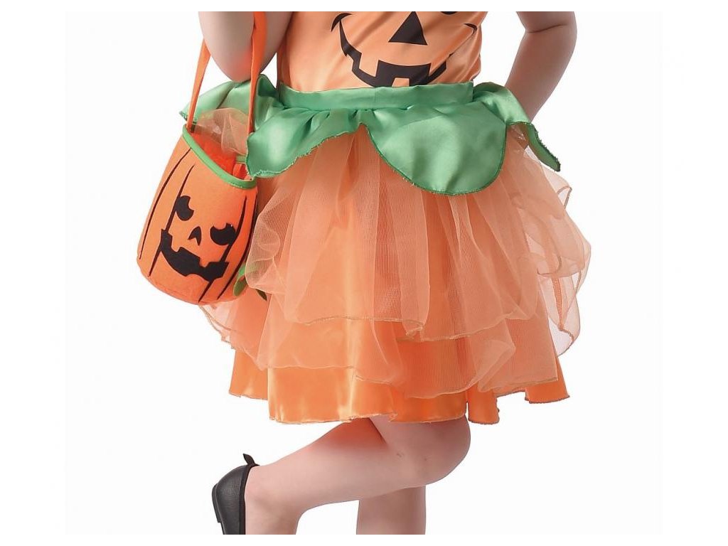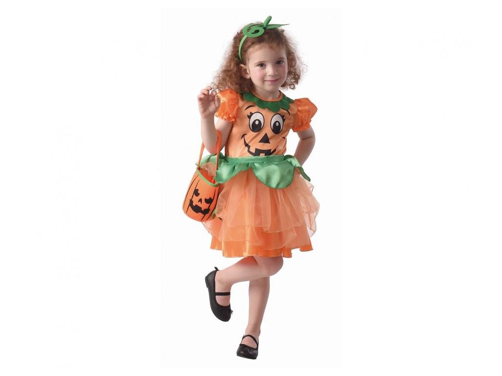 Dětský kostým s motivem dýně (šaty, čelenka, kabelka), velikost 92/104 cm