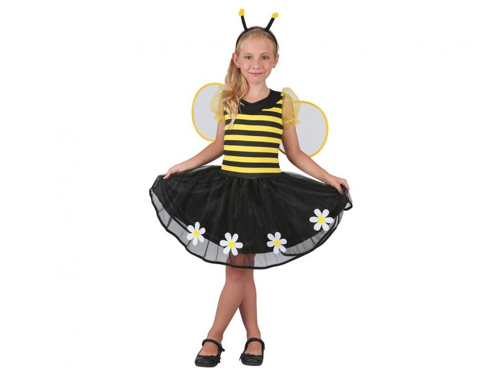 Dětský kostým Sweet Bee (šaty, čelenka, křídla), velikost 130/140 cm