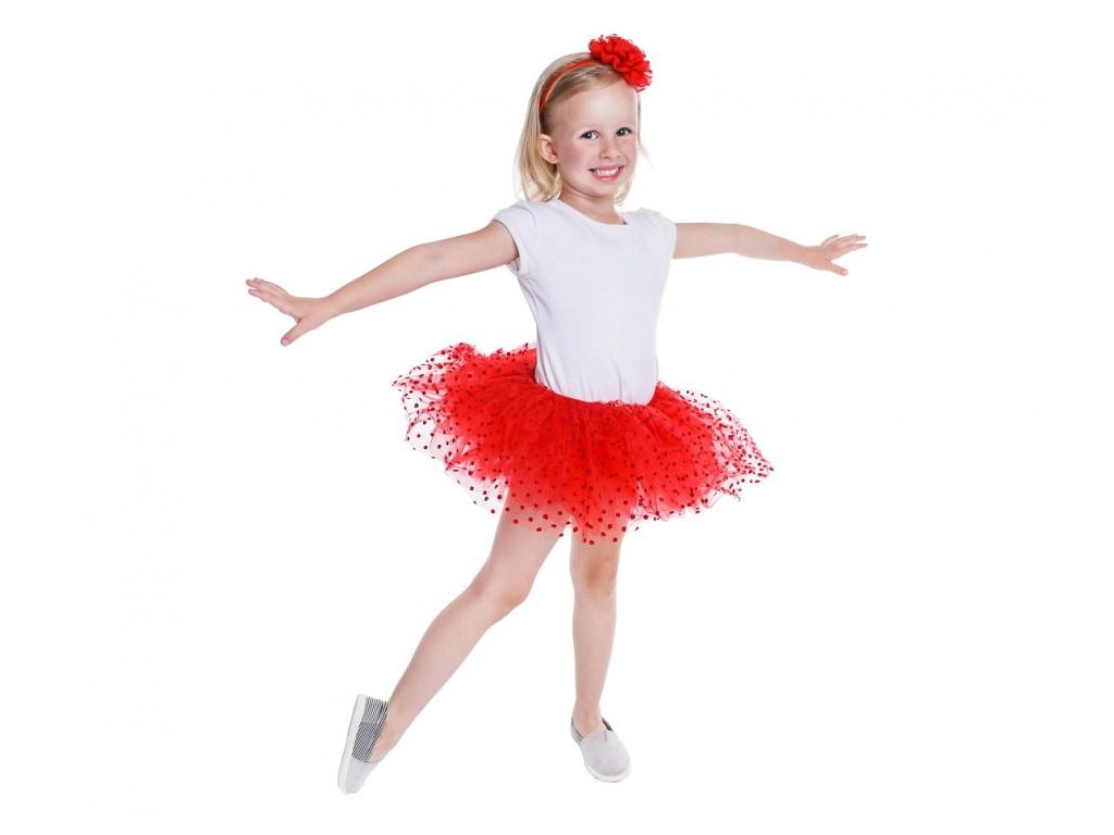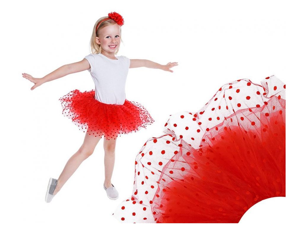 Karnevalová červená detská sukňa s bodkami pre dievčatá.