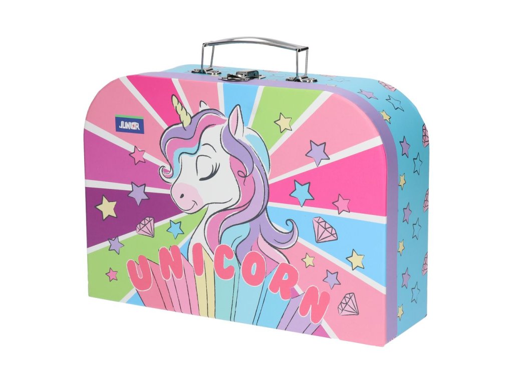 Dětský kufřík je určen pro předškolní věk. Vyroben je z pevného kartonu se zámkem a kovovou rukojetí. Žádné vnitřní příčky. Skvělý pro cestování, hraní a ukládání drobností.Doplňkové parametry