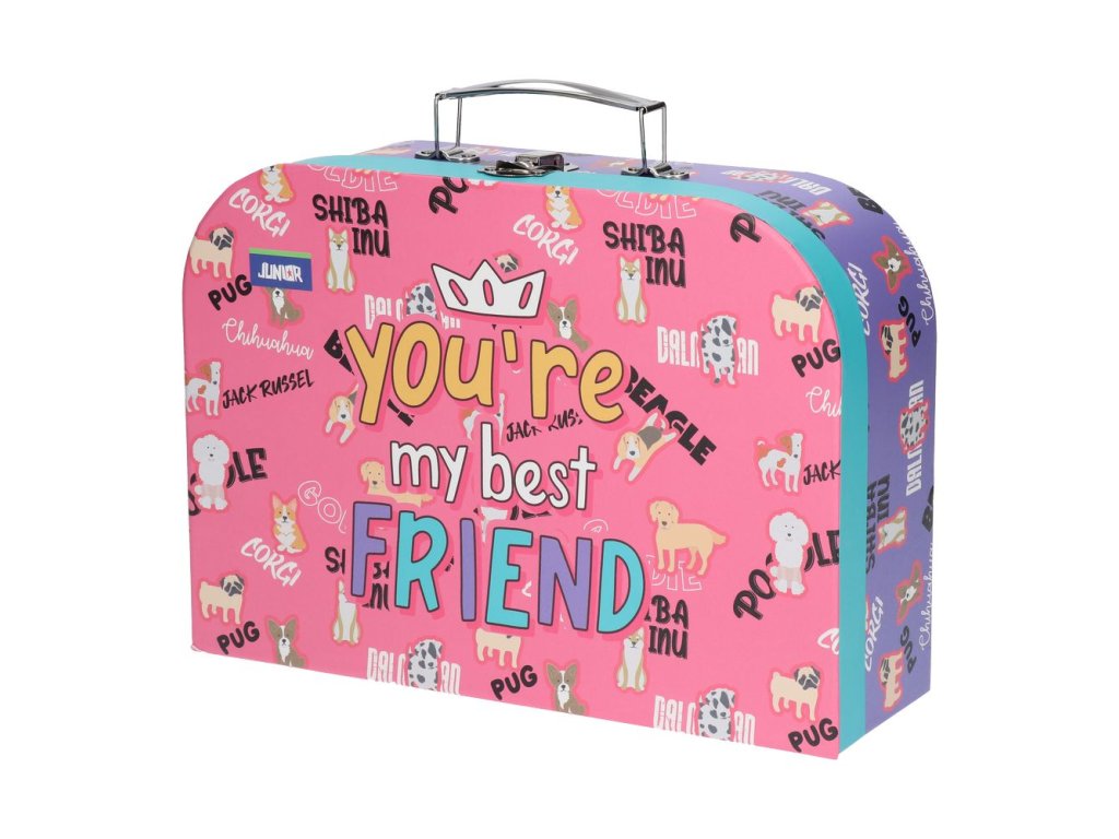 Dětský kufřík je určen pro předškolní věk. Vyroben je z pevného kartonu se zámkem a kovovou rukojetí. Žádné vnitřní příčky. Skvělý pro cestování, hraní a ukládání drobností.Doplňkové parametry