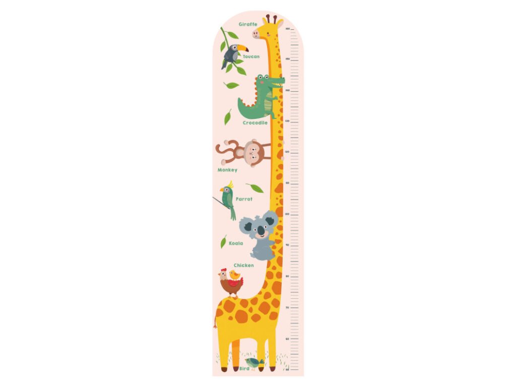 Dětský metr na zeď pěnový žirafa. Délka 120 cm, šířka 30 cm. Vyznačená výška 50 cm - 160 cm.Doplňkové parametry