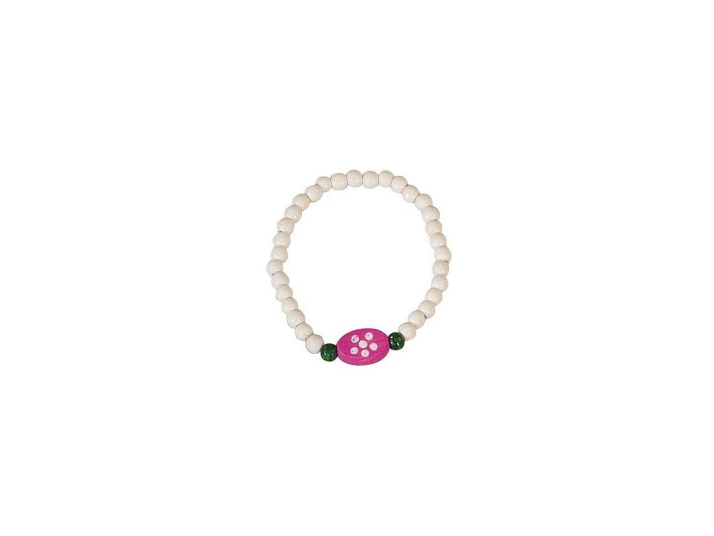 Dětská bižuterie z dřevěných perlí navlečených na gumičce. Délka náramku je cca 70 mm. Nevhodné pro děti do 3 let. Obsahuje malé části. Výrobek je zdravotně nezávadnýDoplňkové parametry