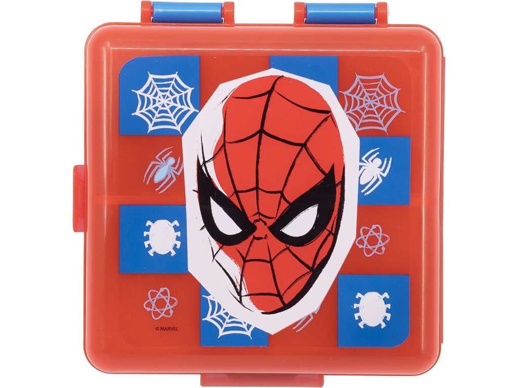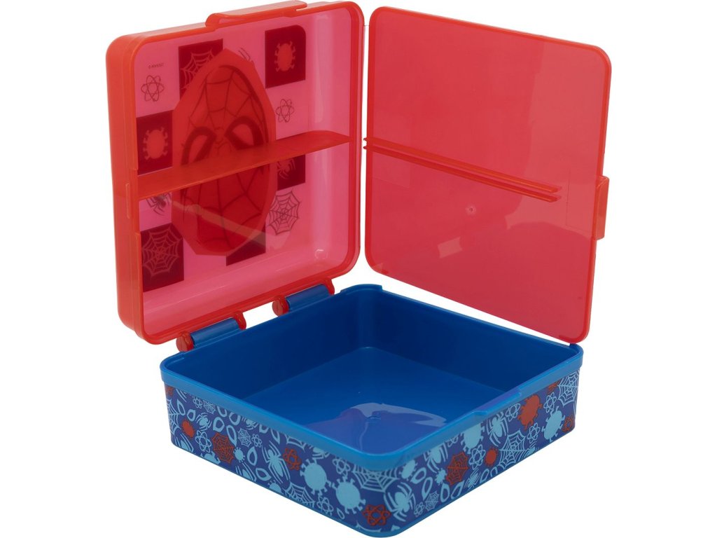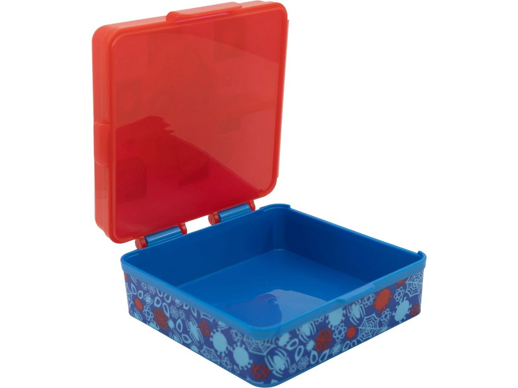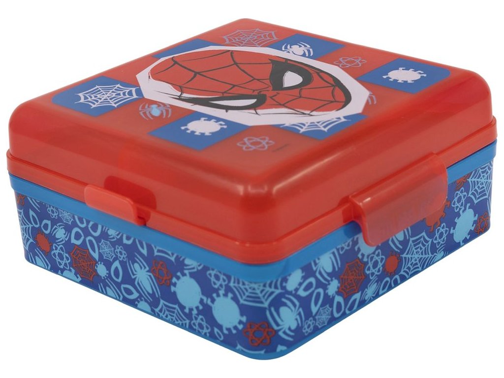 Plastový svačinový box s motivem SPIDERMAN, má jednu velikou přihrádku ve spodní části a ve víčku jsou dvě menší přihradky rozdělené vnitřní prepážkou. Jednoduchý a bezpečný uzávěr.Doplňkové parametry