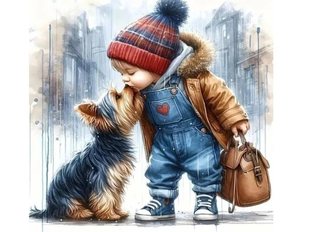 Diamantový obrázek dítě a pes - roztomilost 30 x 40 cm