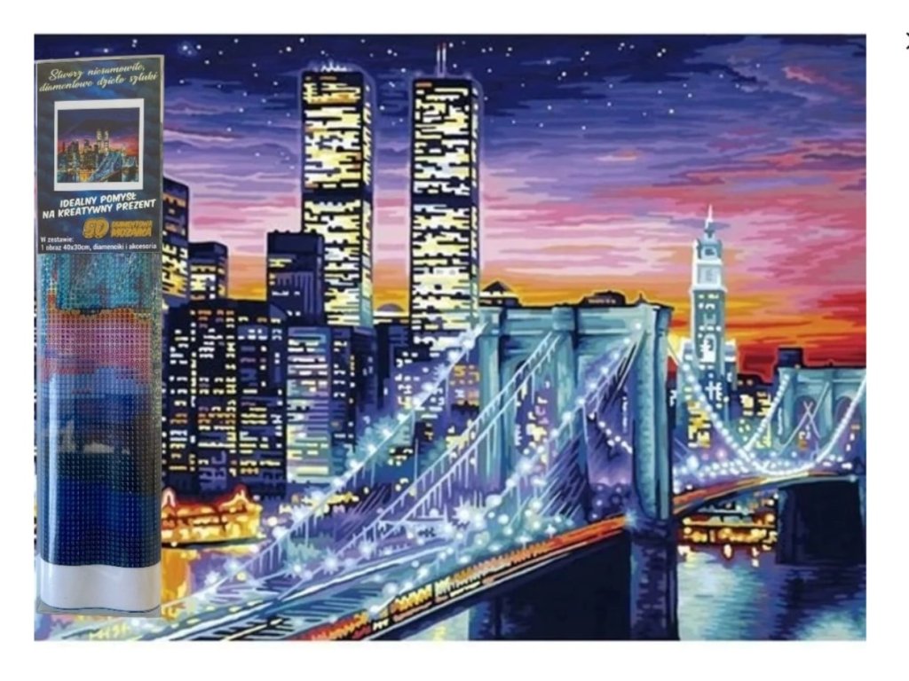 Diamantové obrázky jsou v podstatě mozaiky, které se skládají z malých třpytivých diamantů. Každý diamant má specifický kód a je umístěn na plátno podle předtištěného vzoru. Po dokončení se obrázek třpytí a jiskří a stává se tak úchvatným a jedinečným uměleckým dílem. Jsou skvělým způsobem, jak se zbavit stresu a úzkosti a najít vnitřní klid. Opakující se pohyby a soustředění na detaily při pokládání diamantů pomáhá zklidnit mysl a uvolnit napětí. Diamantové obrázky procvičují jemnou motoriku a koordinaci oko-ruka, což je prospěšné pro děti a seniory. Zároveň učí trpělivosti a vytrvalosti. Hotové obrazy tvoří krásné a třpytivé dekorace, které rozzáří váš domov. Můžete je zarámovat a pověsit na zeď. Obsahuje: 1 plátno s předtištěným obrázkem, 30x40 cm (balení ve srolovaném tvaru),1 pero na aplikaci kamínků,1 kalíšek na vysypání kamínků,1 vosk na nalepení,sada kamínků - od každé barvy jeden sáček.Postup: Obrázek je zakrytý ochrannou folii, kterou sundávejte vždy postupně, tak jak budete aplikovat kamínky. Při sundání celé folie najednou hrozí, že se ztratí viskozita lepidla a kamínky nebudou držet. Plátno obsahuje označení, která jsou umístěna i na sáčcích s kamínky. Podle označení, víte kam který kamínek patří. Nejprve si do hrotu tužky naberete vosk, díky kterému se kamínky snadno přichytí na pero. Kamínky perem aplikujete na obrázek.Doplňkové parametry
