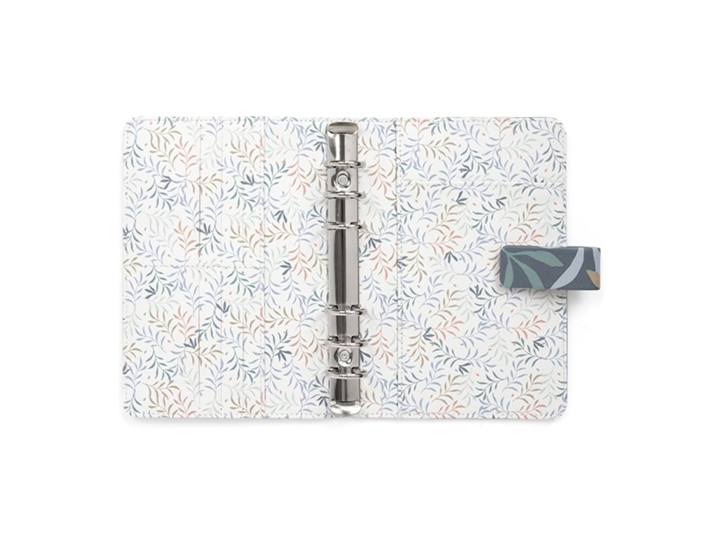 Osobní diář s uzavíráním jako u peněženky. Obsah diáře: průhledná krycí stránka kalendář týden na 2 strany (český / slovenský) bílé rozřazovače (6 ks) pravítko / záložka seznam úkolů (10 listů) bílé čisté papíry (10 listů) průhledná obálka Parametry: Levá strana desek: 1 vertikální kapsa, 6 kapes na karty Pravá strana desek: kapsa na poznámkový blok, elastické poutko na pero Kroužková mechanika: 23mmDoplňkové parametry