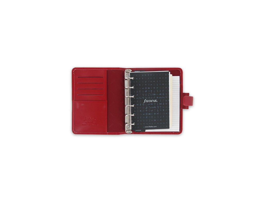 Diář kapesní, vyhotovený ze syntetické kůže. S 6-kroužkovou mechanikou průměru 19mm. Diář obsahuje dvoustránkový týdenní kalendář linkovaný se svátky, v SJ i ČJ, pravítko / záložku, okrajové výřezy, bílý i barevný papír a adresář. Levá vnitřní strana desek je vybavena 4 horizontálními přihrádkami na kreditní karty, pod nimi je jedna vertikální kapsa po celé délce a 1 horizontální kapsa. Pravá vnitřní strana desek obsahuje prošité horizontální kapsa na poznámkový blok.Doplňkové parametry