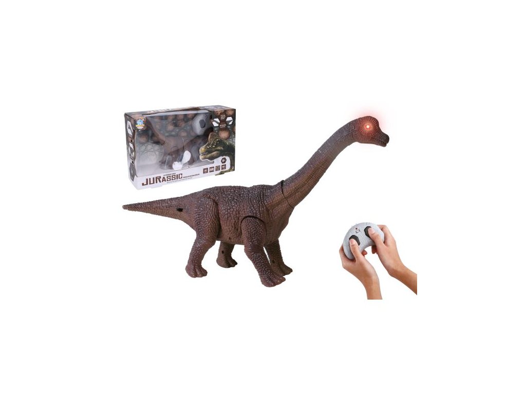 Dino Brachiosaurus RC na dálkové ovládání. Velikost 18 x 18 x 7,5 cm. IR ovladač. Svítící oči a otevírací tlama. Pohyb dopředu a dozadu. Výběr 3 frekvencí (A, B, C).Doplňkové parametry