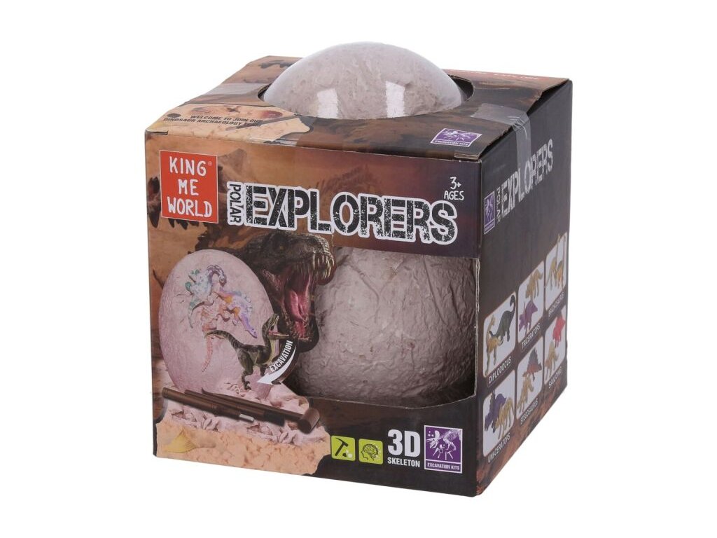 POPIS PRODUKTUDino vykopávka. Velikost 16cm. Velké vejce, které obsahuje 12 figurek dinosaurů - 6 dinosaurů a 6 koster. Balení obsahuje vejce, kladívko, majzlík, štěteček. Hračka je vhodná pro děti od 3 letDoplňkové parametry