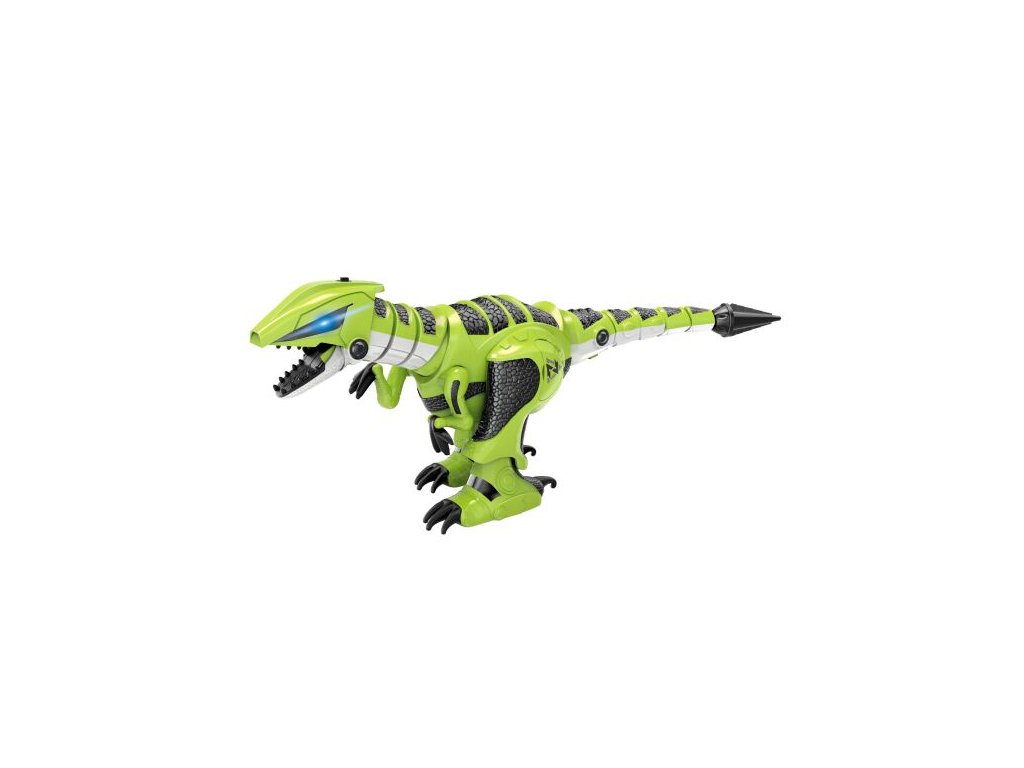 Dinosaurus RC na dálkové ovládání. Rozměry 64x15,7x25,3 cm. Světelné, zvukové a kouřové efekty. Bateriový pack 3.7V do dinosaura součástí, 2xAA do ovladače nejsou součástí. USB kabel součástí. Přepínač ON/OFF ze spodu dinosaura. Nádržka na vodu na hlavě. Nádobka na vodu součástí. Funkce - chůze dopředu, dozadu, otáčení vlevo, vpravo, programování, kouř, hudba, nastavení hlasitosti, ovládání dotykem (dotyk pod spodní čelistí). Složte dle obrázku na spodní straně obalu.Doplňkové parametry