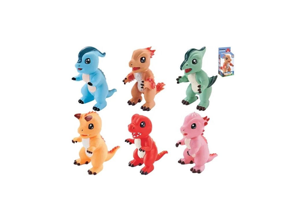 Figurka dinosaura má pohyblivé části. Vybírat můžete ze šesti druhů (do poznámky napište Vámi požadovanou barvu). Rozměr: 15 cm. Materiál: plast. Druhy: modrý, zelený, růžový, červený, oranžový, hnědý.Doplňkové parametry