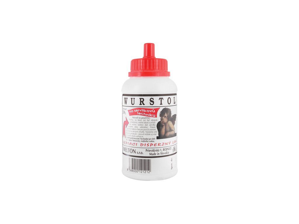 Disperzní lepidlo Wurstol ve formě laku určené na ubrouskovou techniku. Hmotnost 250g.Doplňkové parametry