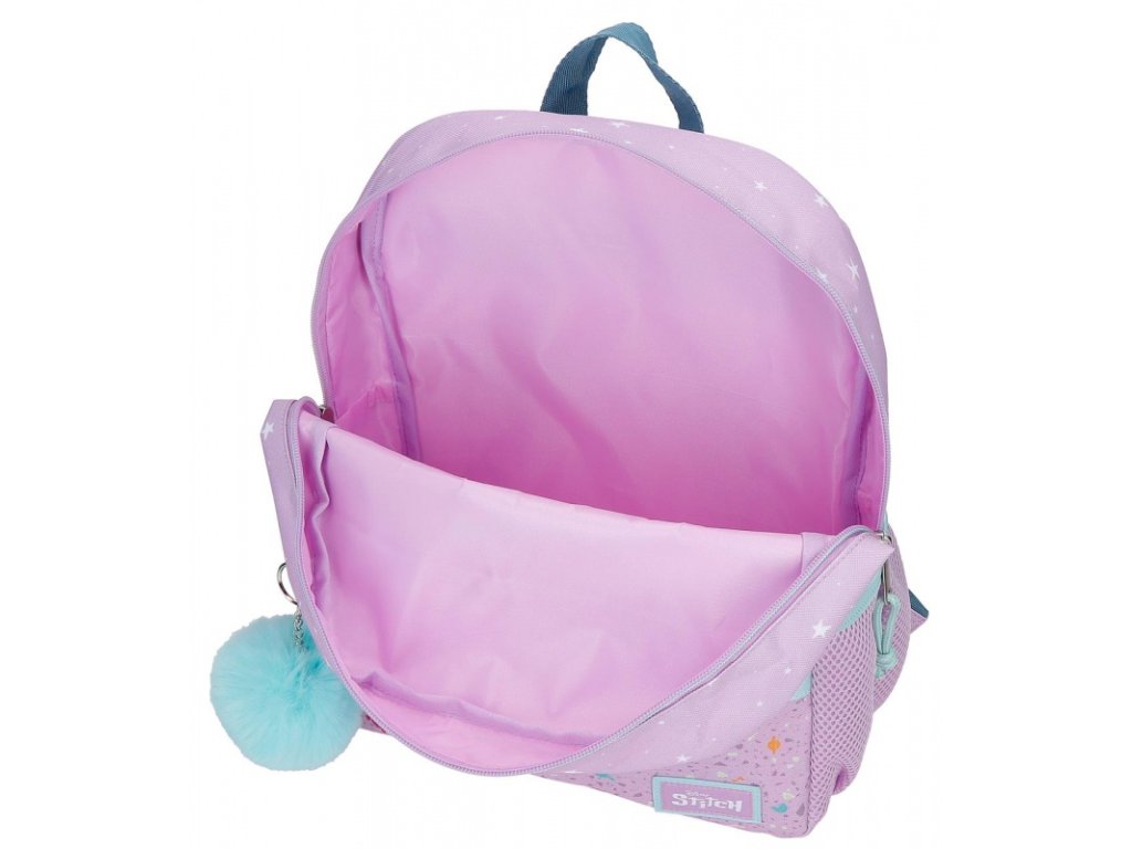Větší batoh Disney Stitch v nádherné kombinaci fialové a pastelových odstínů je ideální pro školačky i malé cestovatele. Praktický prostor, nízká hmotnost a přidaný kožešinový přívěsek z něj dělají dokonalého společníka pro každý den. Rozměry 33×27×11 cm nabízejí více místa pro oblíbené věci.