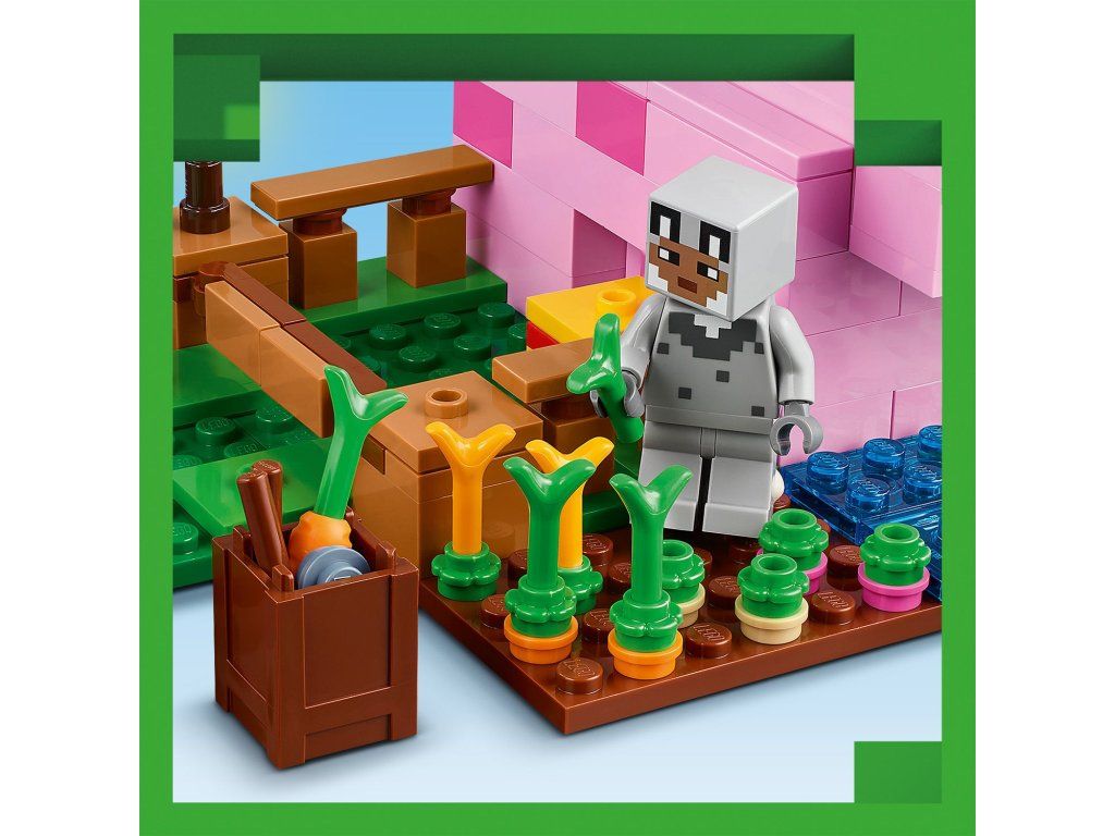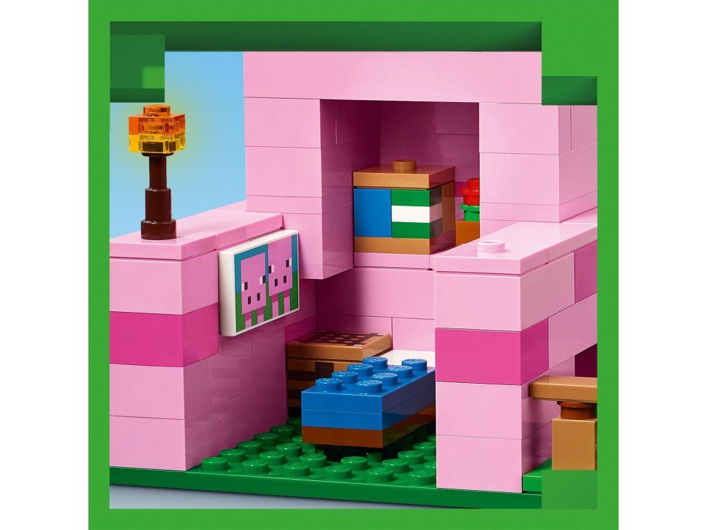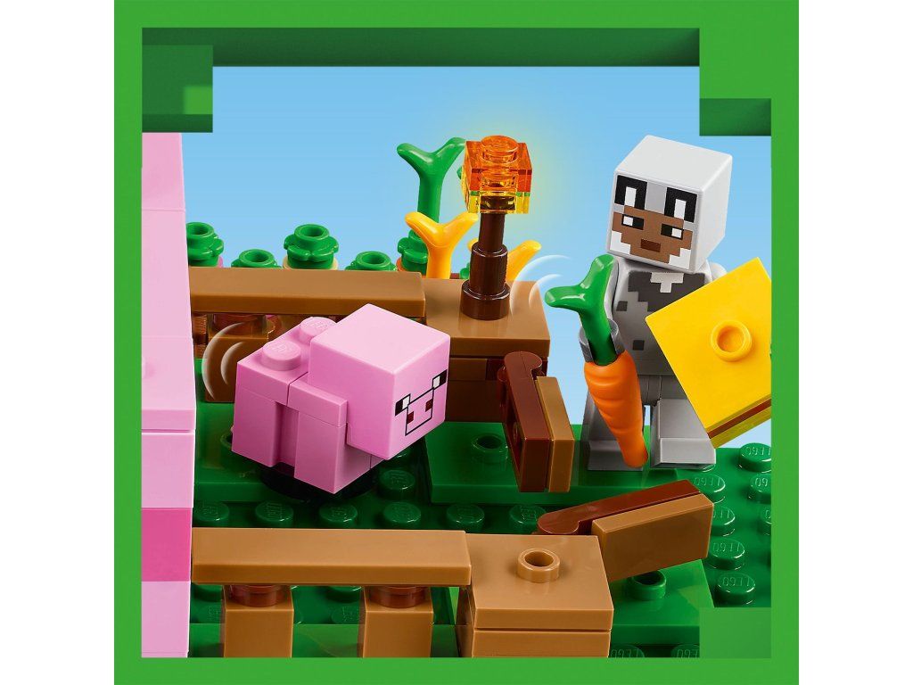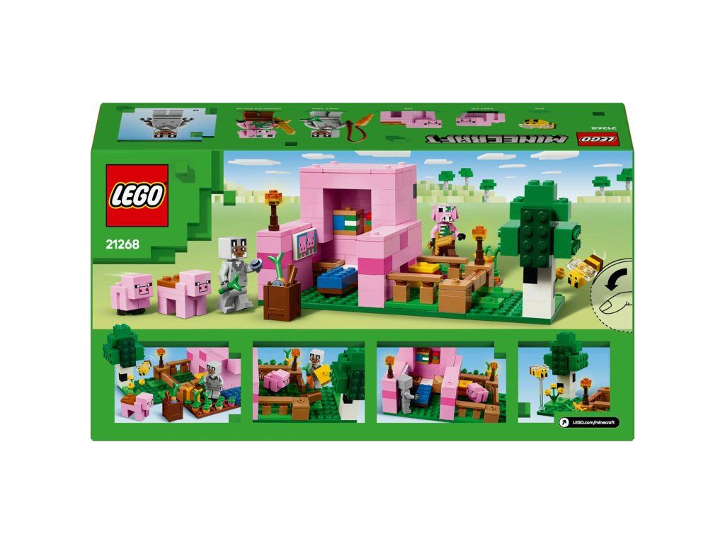 Domeček Prasátka (21268) je ideální hračka pro hráče Minecraftu, kteří milují stavění domů, zvířata a farmy. Tato tvořivá stavebnice Minecraft® představuje skvělý dárek k narozeninám, Vánocům nebo jakékoli jiné příležitosti pro kluky i holky od 7 let. Tato kreativní stavebnice se odehrává v lesním biomu světa hry Minecraft. Součástí je řada figurek z této oblíbené videohry: Postava hrdiny ve vlčím skinu, prasátko, včelu, dospělé prase a zombifikovaného piglina. Děti si připomenou momenty ze hry – můžou například osedlat dospělé prase a pověsit nad něj mrkev, aby se projely kolem zahrady a domu v podobě prasete. Součástí je políčko, kde děti vypěstují brambory a řepu, a pole s bránou, skrz kterou provedete prasátko. Děti se vyhnou zombifikovanému piglinovi, který jim chce zkazit zábavu – stačí vstoupit do domu, kde najdou postel, knihovnu a pracovní stůl, které inspirují k nápaditému hraní. Aplikace LEGO® Builder dětem přináší další zábavu a pomocí svého zařízení v ní můžou přibližovat a otáčet modely ve 3D.Doplňkové parametry