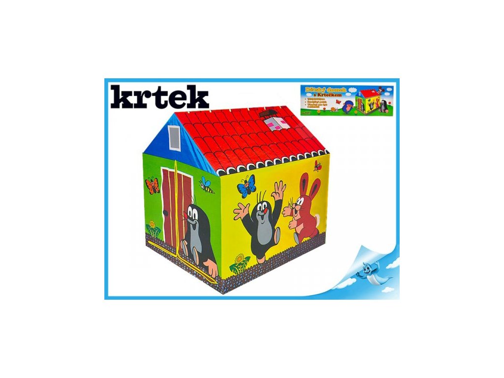 Popis produktu: Dětský domek s motivem oblíbeného hrdiny Krtečka a jeho kamarádů. Domek mohou mít děti postavený v letních měsících nejen na zahradě, ale může zdobit i dětský pokoj. Do domečku se vejdou až dvě děti. Je vyroben z vanilového materiálu s plastovou konstrukcí. Dětský stan o velikosti cca 94 × 72 × 103 cm.Povrchový materiál je pevný vinyl. Konstrukce je z plastových trubek. Vhodné pro děti od 3 let.Doplňkové parametry