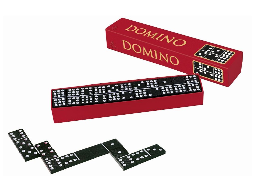 Stolní hra se sadou dominových kamenů o rozměrech 20x40 mm v krabičce. Kameny mají na sobě kombinaci dvou čísel. Zábavná hra pro každou věkovou skupinu, vhodná i při seznamování dětí s prvními početními úkoly. Výrobek splňuje požadavky EU na bezpečnost hraček a je vhodný pro děti od 3 let. Baleno v papírové krabičce o rozměrech 155x45x30 mm. Obsah balení: 28 dominových kamenů.Doplňkové parametry