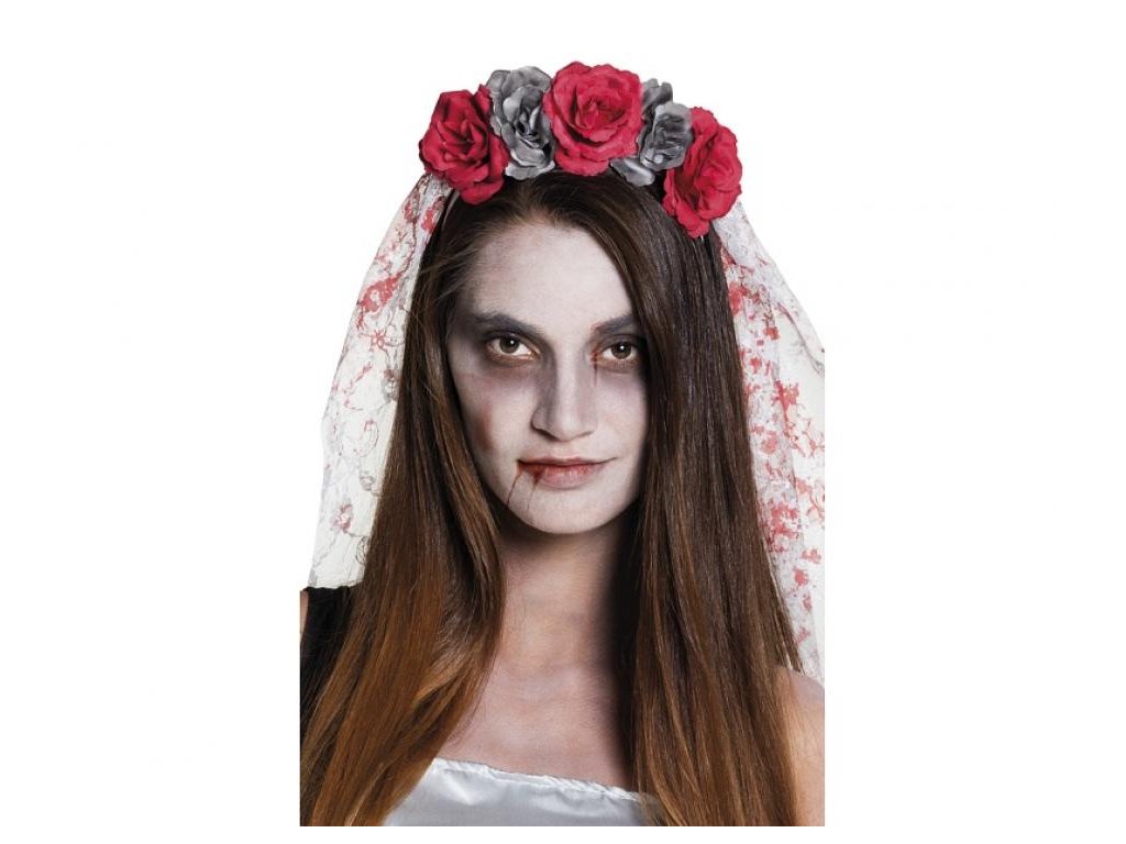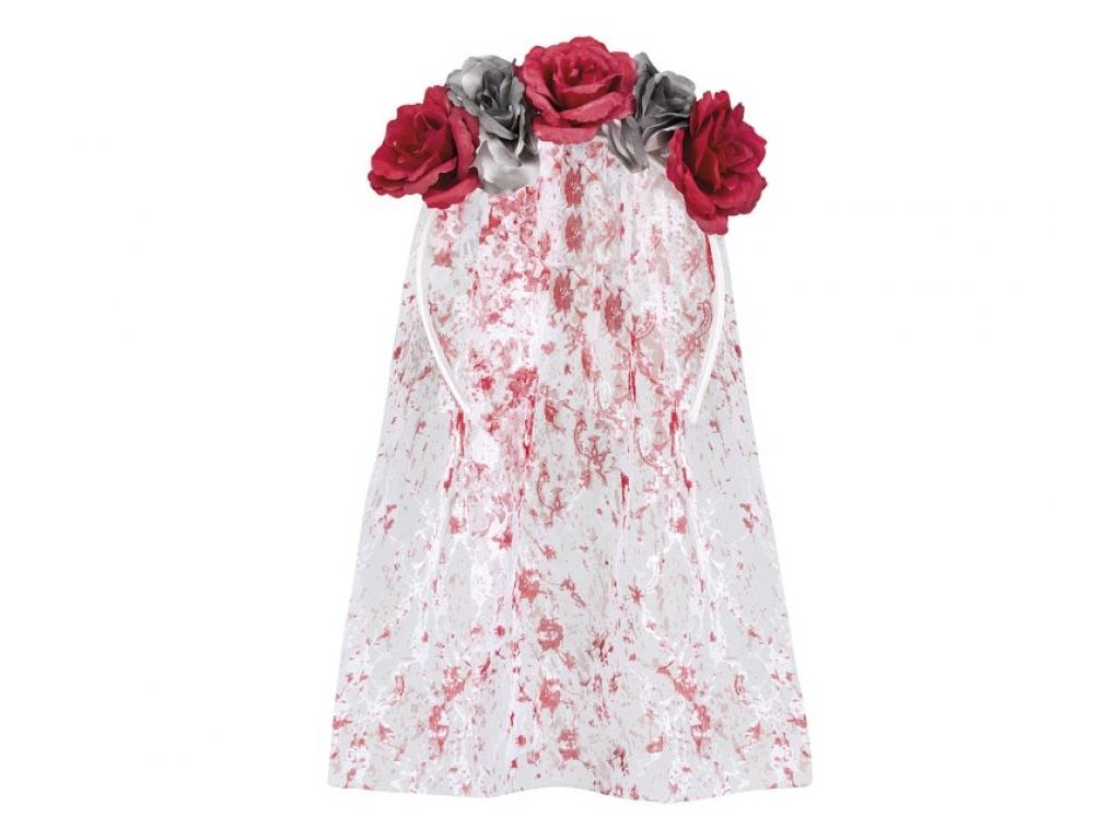 Tiara s vencom a závojom so stopami krvi - skvelý doplnok ku kostýmu na Halloween