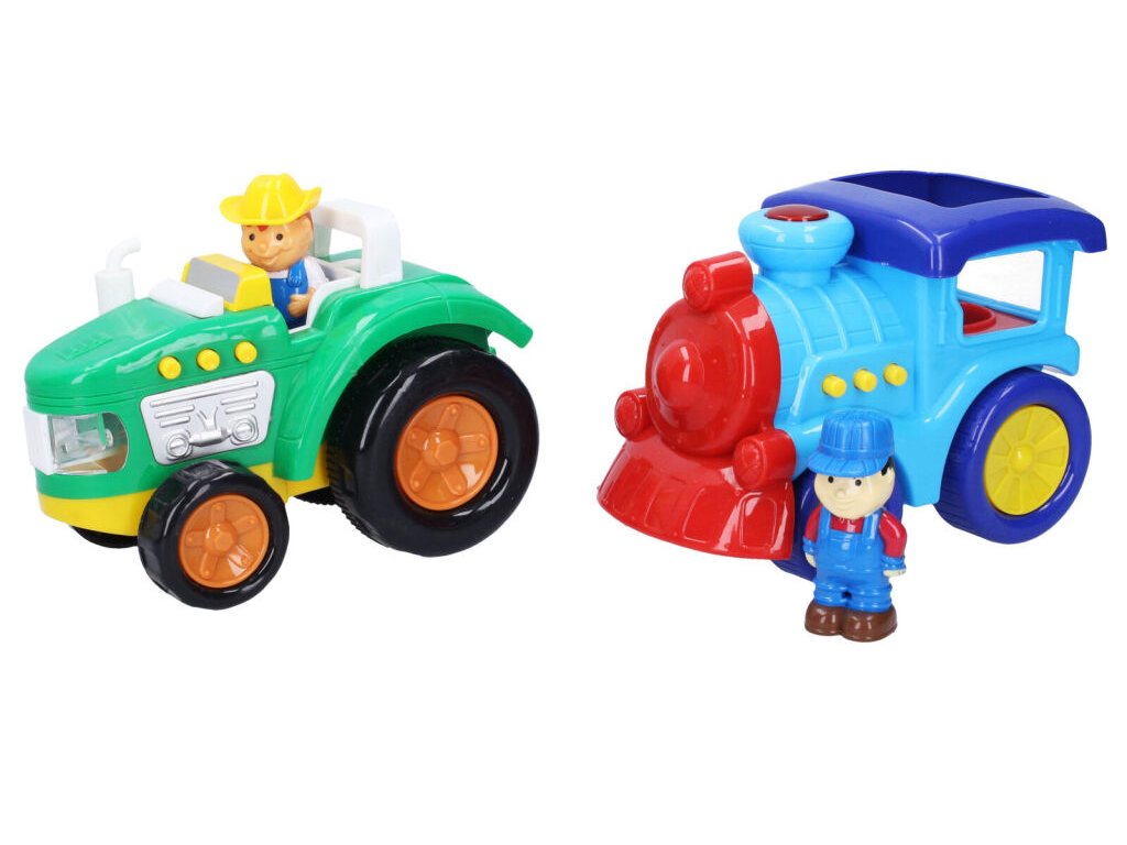 Staň se strojvedoucím vláčku a doprav cestující včas do práce, do školy nebo na výlet! Nebo chceš být raději traktoristou, který se bude starat o svou farmu se zvířátky? Mašinka a traktor vydávají světelné a zvukové efekty. Velikost: 17 cm Doporučený věk: od 2 let Baterie 3x knoflíková LR44 součástí balení.Doplňkové parametry