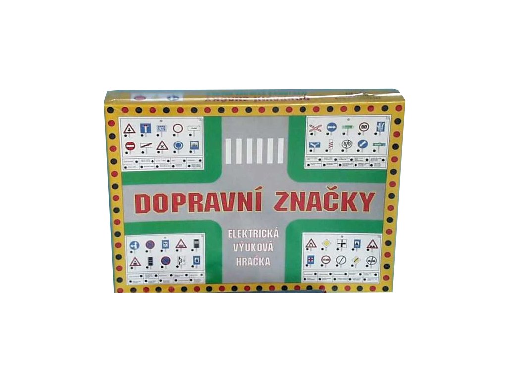 Dopravní značky je dětská hra, s jejíž pomocí se naučí hravou formou 80 dopravních značek. Hra obsahuje 8 výměnných listů s vyobrazeními a názvy 80 nejběžnějších dopravních značek. Úkolem je přiřadit ke každé značce správný název. Hra je napájena dvěma tužkovými bateriemi, které nejsou součástí výrobku.Doplňkové parametry