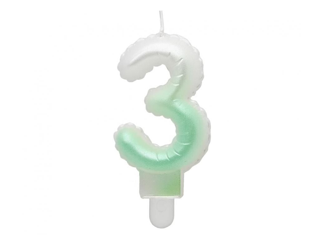 Dortová svíčka č. 3 balónková bílo-zelená