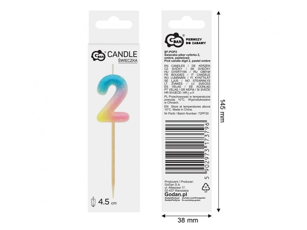 Dortová svíčka - číslice "2" pastelová ombré 11 cm