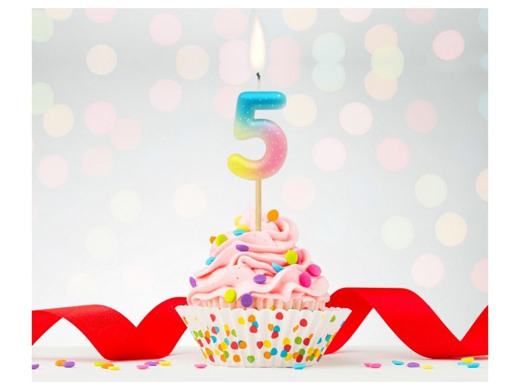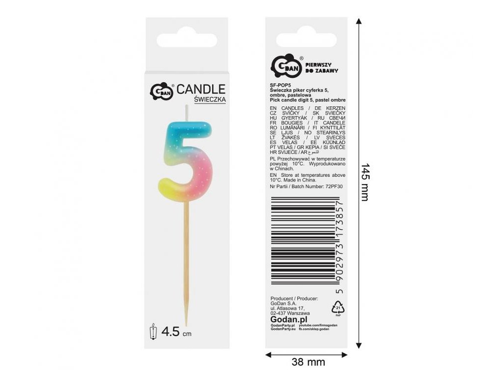 Dortová svíčka - číslice "5" pastelová ombré 11 cm