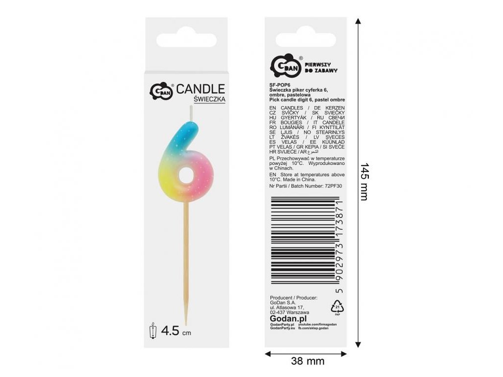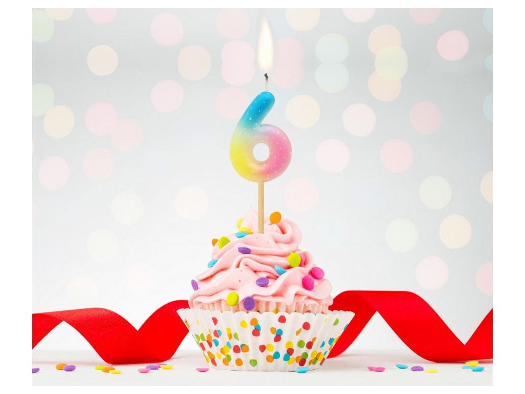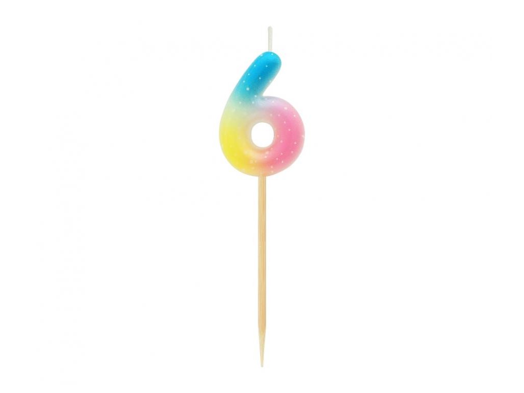 Dortová svíčka - číslice "6" pastelová ombré 11 cm