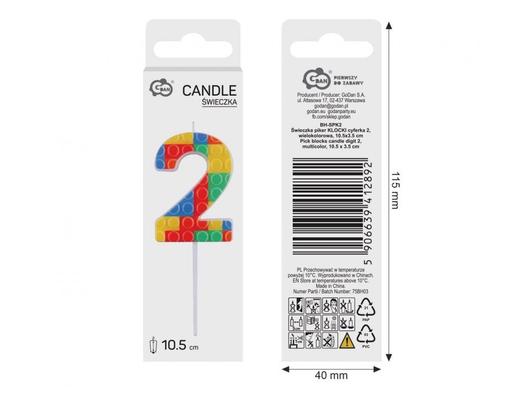 Dortová svíčka - číslo "2" Bloky 10,5 cm