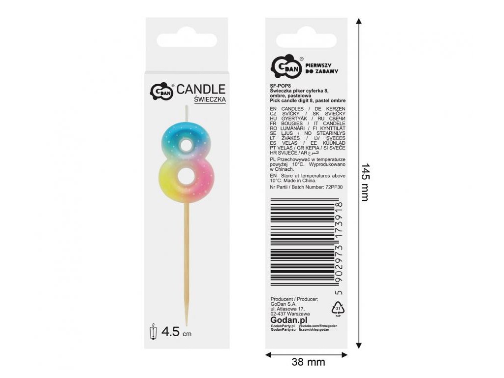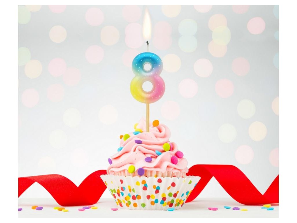 Dortová svíčka - číslo "8" pastelové ombré 11 cm