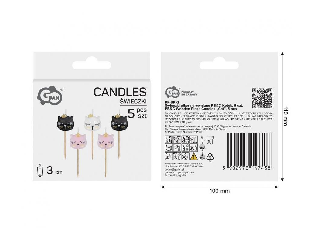 Dortová svíčka - Kočka 7 cm (5 ks)