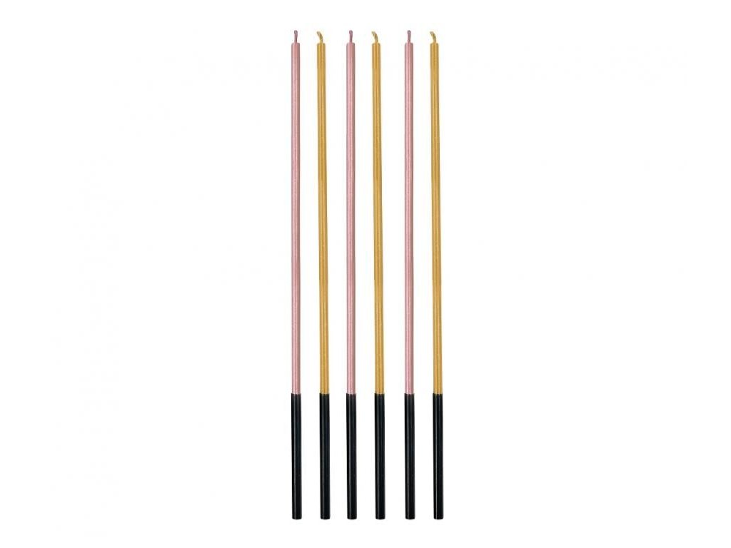 Dortové svíčky o délce 17 cm ve dvou odstínech: růžové a zlaté. V balení 6 ksDoplňkové parametry