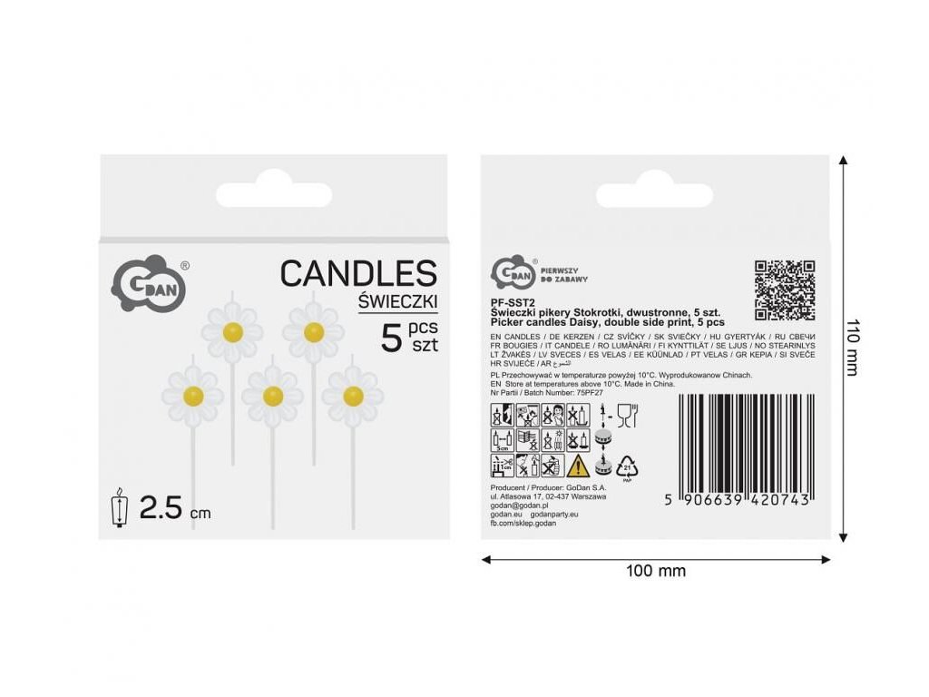 Dortové svíčky pikery 5 ks - Sedmikrásky obustranné
