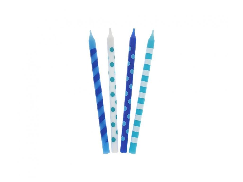 Dortové svíčky PUNTÍK 12cm 16ks modrý mix