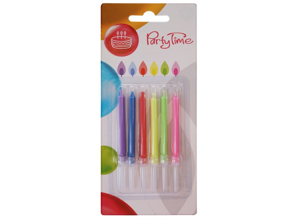 Dortové svíčky s barevným plamenem 6 ks mix